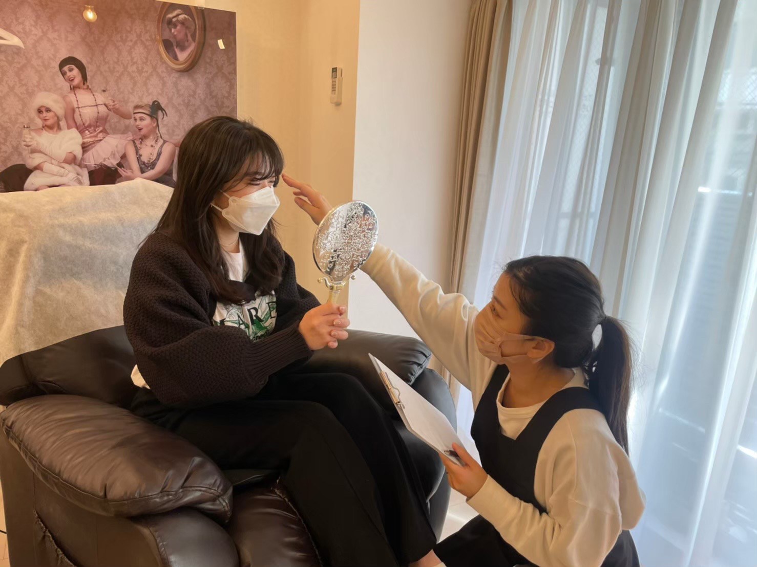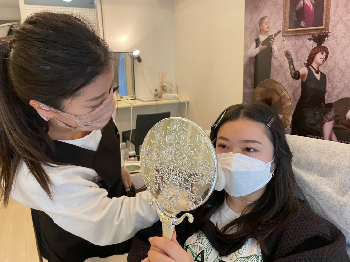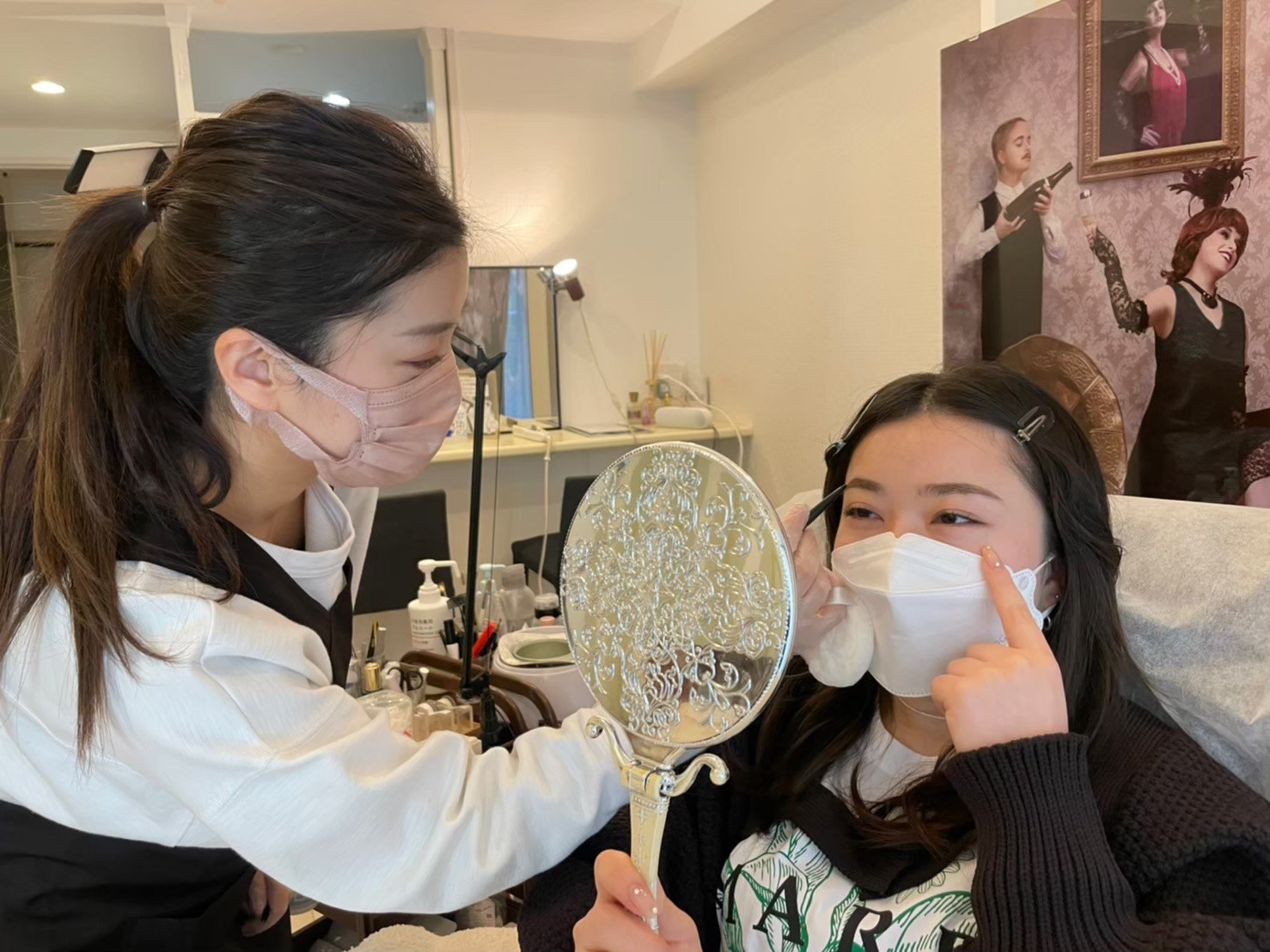 当店では、施術をしたあとにセルフメイクの仕方を丁寧にご案内しています。