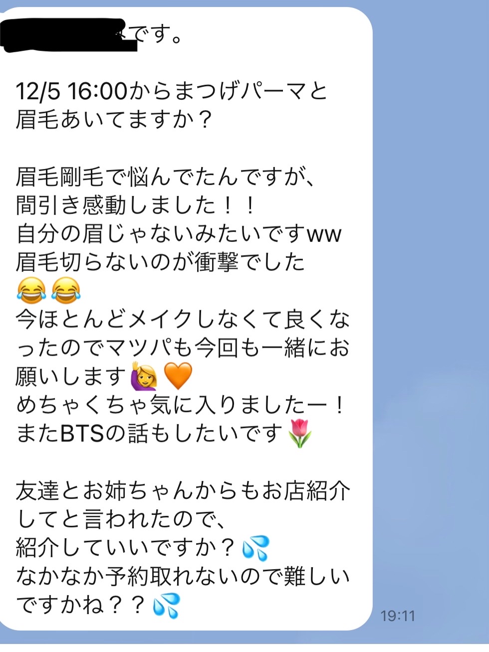 加えて、カットをしない、ピンセットで一本づつ毛流れを整える技法なので、バラバラな毛流れにならず、回数を重ねるごとに崩れにくくなりますよ。ぜひお待ちしております。